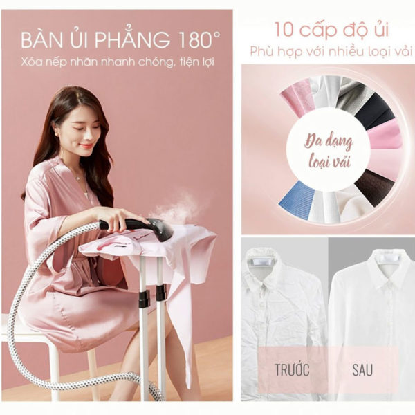 Sử dụng linh hoạt 2 tư thế: Có thể ủi theo hướng đứng hoặc ngang, dễ dàng làm phẳng quần áo, rèm cửa, ga giường mà không cần dùng bàn ủi truyền thống.