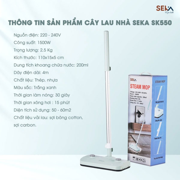 - Tên sản phẩm: SEKA SK550 Cây Lau Nhà Hơi Nước